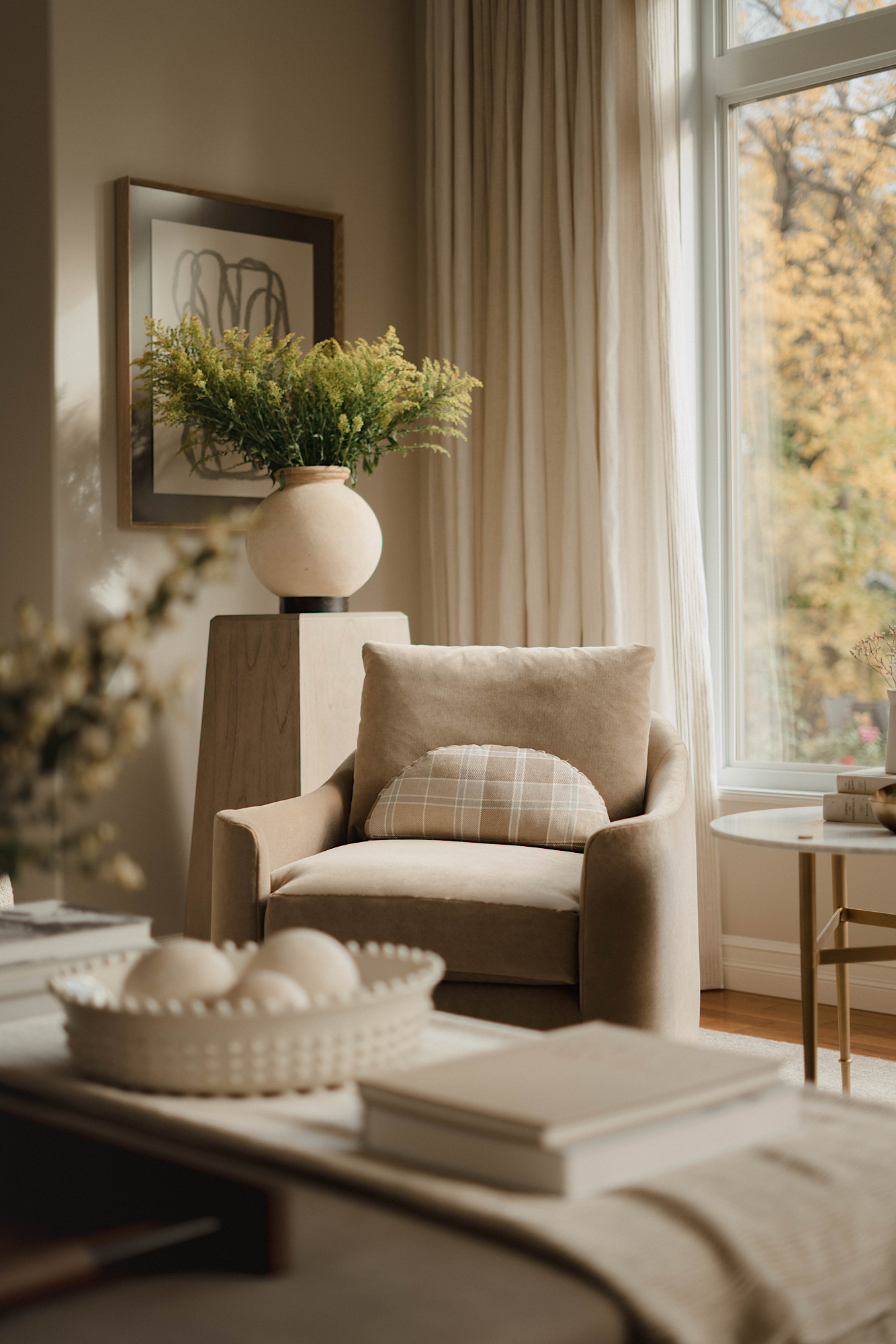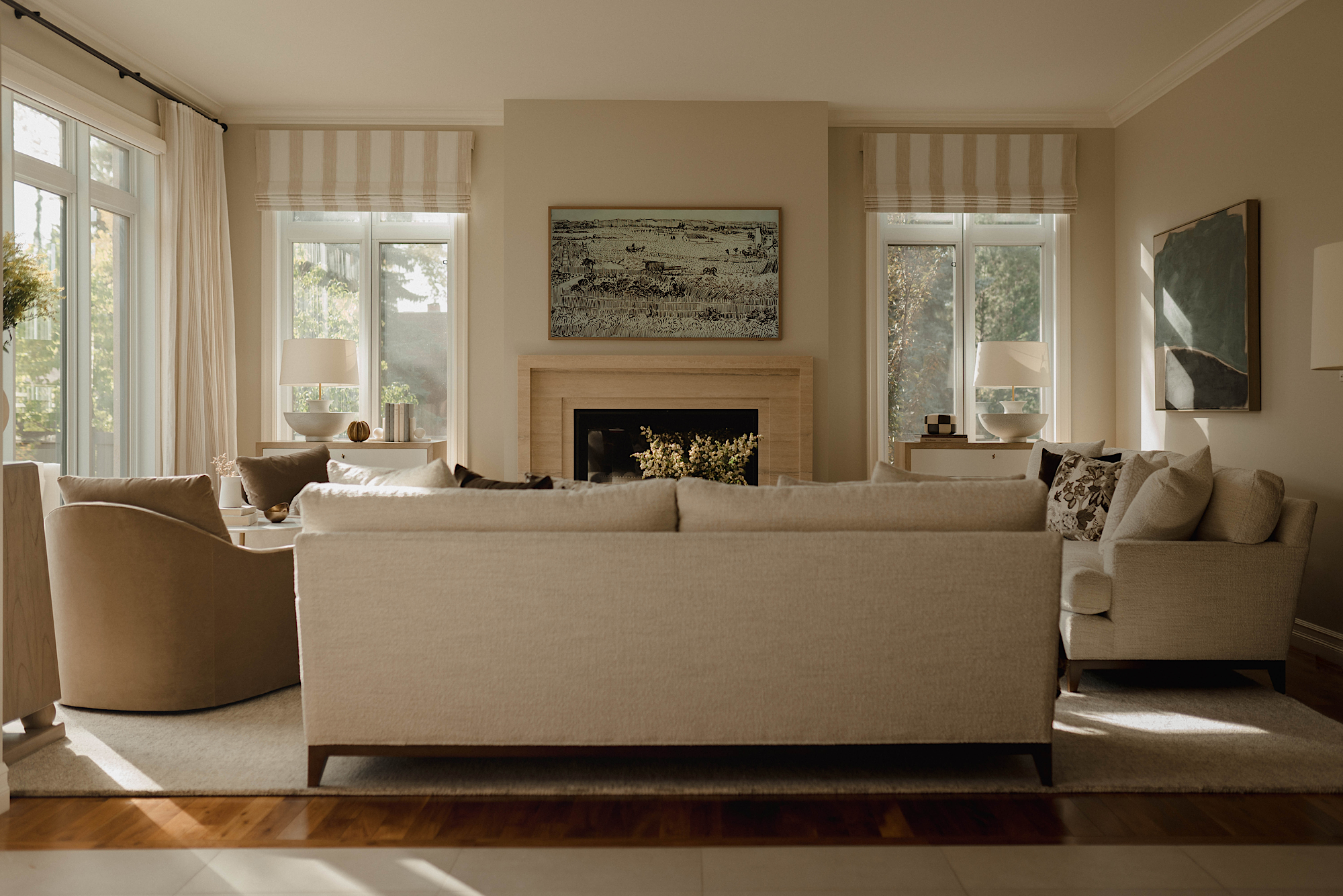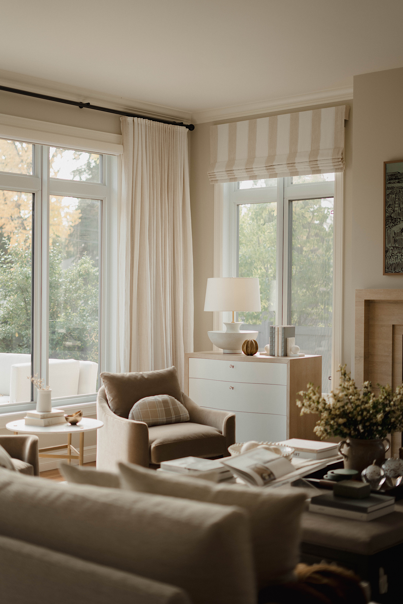 The result of our work at this stately house located in the desirable neighbourhood of Glenora is a beautifully designed home that reflects the unique aesthetics of the homeowners. The use of colour, warm neutrals, updated finishes, custom window treatments and carefully chosen furnishings has transformed the space into a visually stunning and highly functional living space.